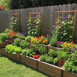 Installing raised planter boxes along your fence line adds both height and dimension to your garden.