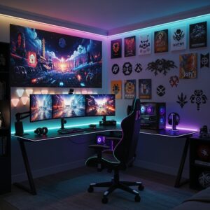 Use large gaming posters, decals, or even custom murals of favorite characters or scenes.