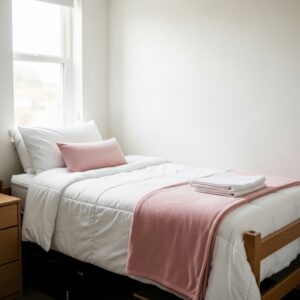 Using soft pink shades, simple designs, and keeping things organized will make your dorm room peaceful and stylish.