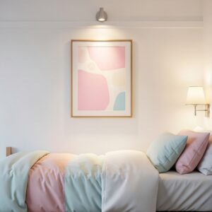 Decorate with simple wall art in pink tones.
