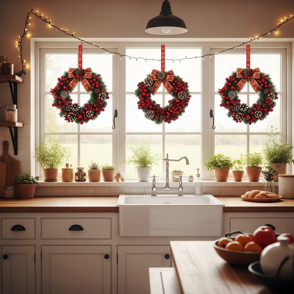 Your kitchen windows are a perfect canvas for festive holiday decorations. From twinkling lights to greenery and ornaments, decorating your