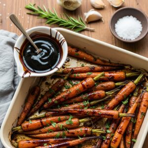 Tender roasted carrots coated in a glossy balsamic glaze make a perfect addition to weeknight dinners, festive holidays, or any special occasion.