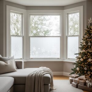 For an easy yet charming touch, decorate your bay window glass with snowflake clings or frosted decals.