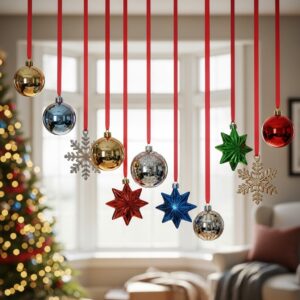 The ornaments will catch the light during the day and sparkle beautifully at night, adding depth and shimmer to your living room decor.