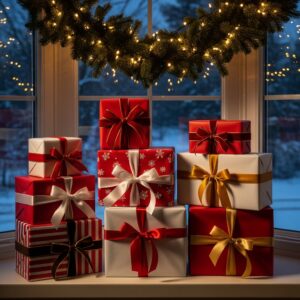 Decorate the window ledge with beautifully wrapped gift boxes in your Christmas color theme.