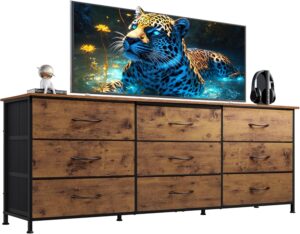 This fabric dresser is an excellent choice because its wide wooden top and 12 deep drawers offer exceptional storage, helping you keep clothes, bedding, and everyday essentials neatly organized.