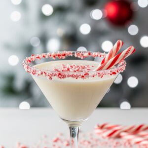 A dessert-like cocktail, this creamy martini combines white chocolate liqueur and vanilla vodka with a cooling peppermint finish.