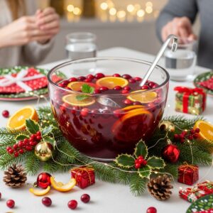 Christmas punch is a crowd-pleasing drink that blends citrus, cranberry, and sparkling elements.