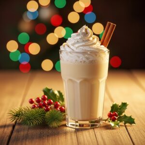 It combines the sweetness of traditional nog with the warmth of bourbon or rum, creating a decadent drink perfect for cold evenings.