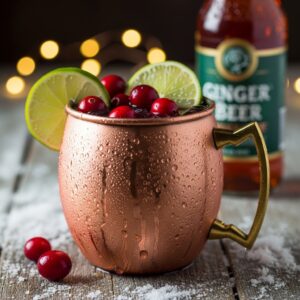 This festive twist on the traditional Moscow mule blends tart cranberry juice with spicy ginger beer, creating a refreshing and holiday-ready drink.
