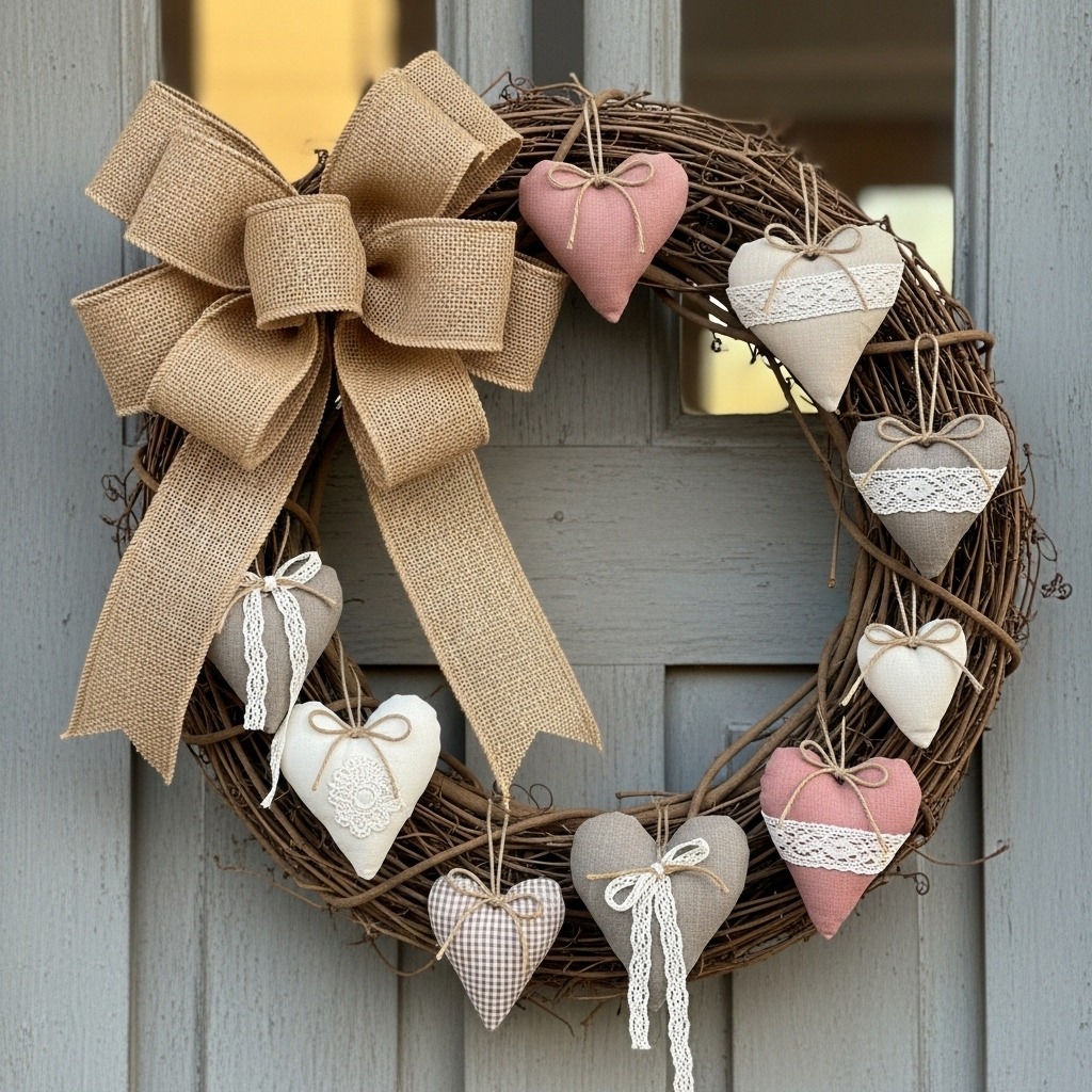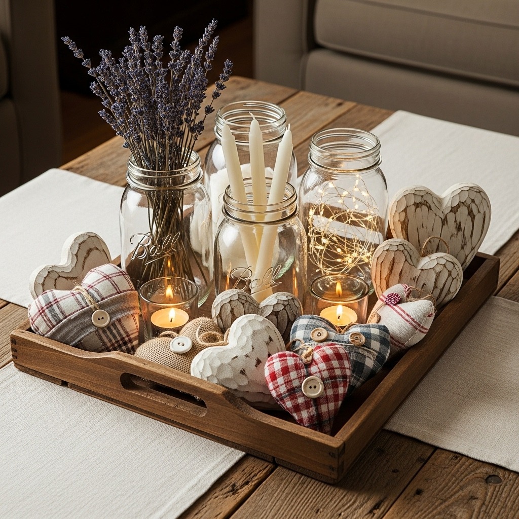 Primitive Valentine décor is all about warmth, nostalgia, and handmade charm. It uses natural textures, muted colors, and timeworn details