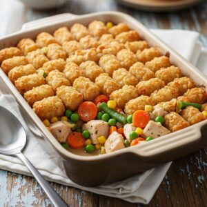 If you love creamy casseroles with a crispy, golden topping, this Chicken and Veggie Tater Tot Casserole Recipe is the ultimate comfort food.