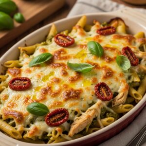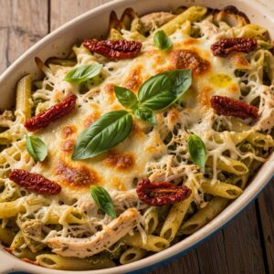 If you’re craving something creamy, cheesy, and full of flavor, this Chicken Pesto Pasta Casserole Recipe is the perfect dish.