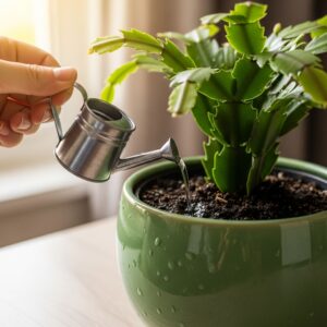 Unlike desert cacti, the Christmas cactus enjoys evenly moist soil — but not soggy roots.