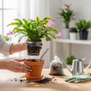 Although Christmas cacti like to be slightly root-bound, repotting every 2–3 years keeps the soil fresh and nutrient-rich.