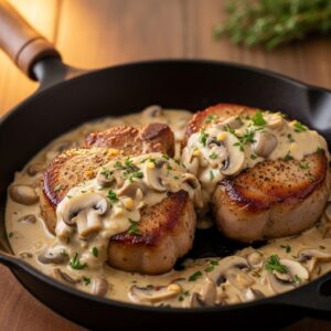 The creamy mushroom sauce elevates the pork chops into a restaurant-quality meal right from your own kitchen.