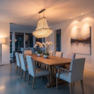 Whether you prefer a modern geometric design, a rustic farmhouse style, or a glamorous crystal fixture, a chandelier can instantly set the tone.