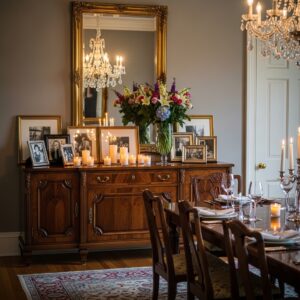 A buffet or sideboard is not only functional but also adds character to the dining space.