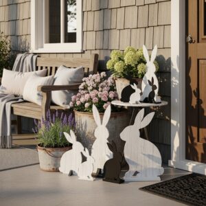 Replace traditional bunny figurines with sleek wooden or metal bunny silhouettes painted in neutral tones like white, cream, or matte black.