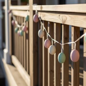 String together wooden or soft‑fabric Easter eggs and hang them across porch beams or along the railing.