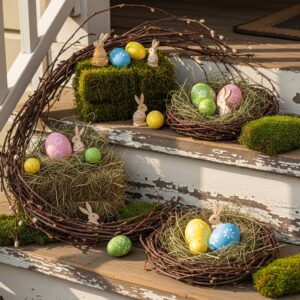 Nest small eggs or mini bunny figurines within these textures to create organic, inviting groupings.