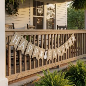 Drape a banner crafted from burlap and linen that reads “Happy Easter” or “Hello Spring.”