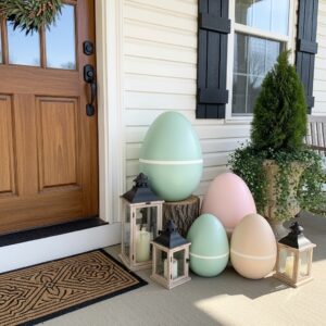 Create a statement with oversized farmhouse‑style Easter eggs made of wood, wicker, or distressed metal.