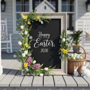 Set up a large framed chalkboard on the porch with a cheerful Easter greeting or a seasonal quote.