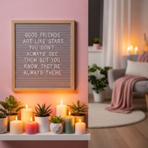 Arrange a few friendship-themed items like mugs, trinkets, or mini plants to personalize your wall.