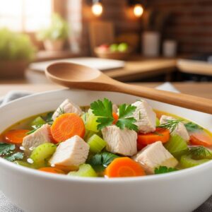 A protein-packed soup using lean chicken breast and fresh vegetables, perfect for a light but satisfying meal.