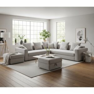 Modular sofas and ottomans can be rearranged to suit different needs, whether hosting friends or enjoying a quiet evening.