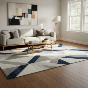 Choose rugs with geometric patterns, subtle textures, or monochromatic tones for a modern aesthetic.