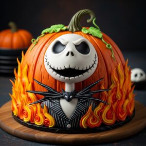 Celebrate Jack’s Pumpkin King persona with a cake shaped like a grinning pumpkin wearing his signature pinstripe suit.