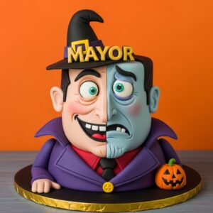 The two-faced Mayor is a fun and creative character to recreate in cake form.