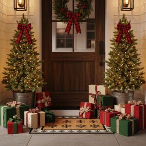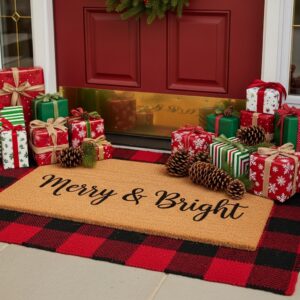Swap your regular mat for a Christmas doormat featuring festive sayings like “Merry & Bright” or “Home for the Holidays.”