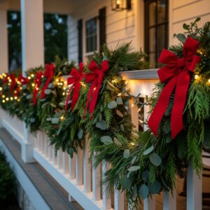 Drape evergreen garlands over porch railings, fences, and even around windows.