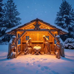 Add subtle lighting to highlight the scene after sunset. It’s a beautiful way to celebrate the true meaning of Christmas.