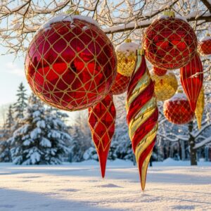Choose weatherproof ornaments in metallics or bold holiday colors.