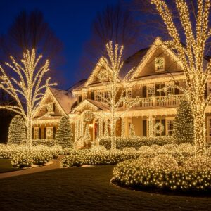 Wrap lights around trees, shrubs, and pillars, and outline your roof for extra sparkle.