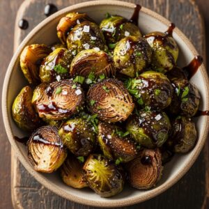 Roasted Brussels sprouts with balsamic glaze is a delicious and healthy side dish that combines the earthy flavor of sprouts with the sweet tang of balsamic vinegar.
