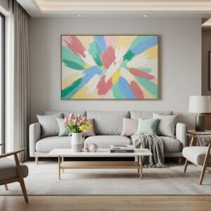 Large canvases featuring abstract designs, nature-inspired prints, or vibrant color blocks can serve as conversation starters.