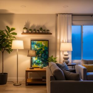 Accent lights can highlight plants, art pieces, or textured walls for extra charm.