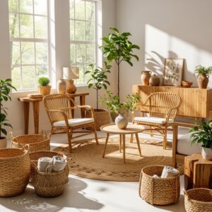 Incorporate natural textures like rattan, wicker, jute, or bamboo into furniture and decor.