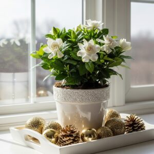 With glossy dark-green leaves and creamy white flowers, gardenias bring both elegance and a rich, floral aroma to your holiday décor.