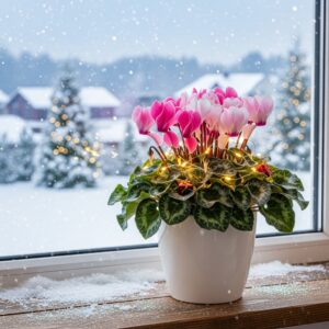 Cyclamen are charming plants that bloom in shades of pink, red, and white — ideal for the holiday season.