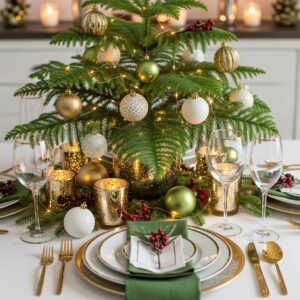 Known for its soft, symmetrical branches and evergreen beauty, this tree can easily become the heart of your holiday table décor.